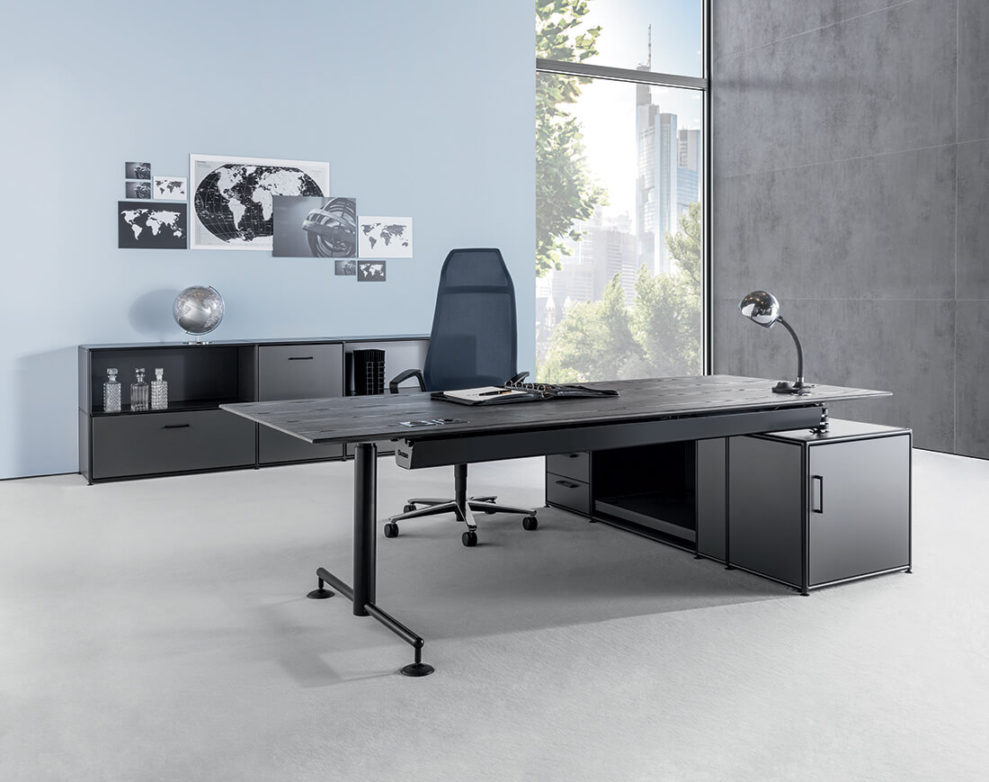 Modul Space, la plus flexible des solutions d’équipements de bureaux et de salles de conférences, conçue à base d’un ingénieux système modulaire de panneaux de diverses matières et couleurs (dont celles de Le Corbusier), de tubes chromés ou noirs et de connecteurs. Sa pluridisciplinarité lui permet de répondre aux besoins de tous les espaces de travail, quelle que soit la discipline. Étagères, consoles, meubles à tiroirs… L’univers Modul Space intègre des éléments indispensables au fonctionnement du bureau.