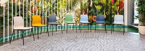 Comme le fait une plante avec ses pétales et ses feuilles, les chaises Dauphin Fiore dévoilent leurs sept nouvelles couleurs de coque ainsi que leurs trois nouvelles teintes de piétement : blanc, noir ou chromé.